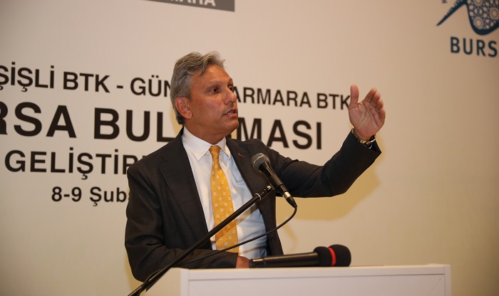 “Öyle bir yerdeyiz, öyle bir şehirdeyiz ki hayalleri gerçeğe, düşünceleri vizyona çevirmiş, bir beyliği önce devlete sonra da imparatorluğa çevirmiş bir şehir. Osmanlı’yı Anadolu ölçeğinden dünya ölçeğine Bursa taşıdı. Bursa, gelen herkesi bir yolculuğa çıkarıyor. Tarihe, kültüre ve estetiğe… Buraya geldiğiniz anda zaten turist oluyorsunuz. Tarihsel zenginliğini insan kaynaklarının çeşitliliğiyle bereketlendiren, tarihte nerede iddiası varsa oradaki insanları bugün içine alan ve içinde yaşatan, geleceğe emin adımlarla yürüyen bir şehirdir Bursa. İşte bu vasfıyla Türkiye’nin turizmde neler yapabileceğini gösteren öncü bir şehirdir. Turizmle endüstrinin beraber büyüyebileceğini gösteren modern bir örnektir” dedi.