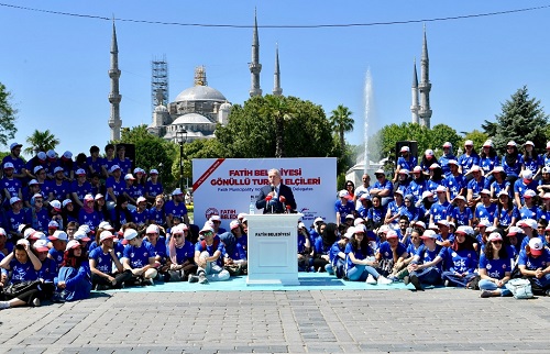 İstanbul’un Fatih ilçesinin tarihi ve kültürel noktalarını ziyaret eden turistlere yardımcı olmak amacıyla başlatılan “Gönüllü Turizm Elçileri” projesi kapsamında yaşları 14 ila 30 arasında değişen 450 gönüllü turizm elçisi göreve başladı.