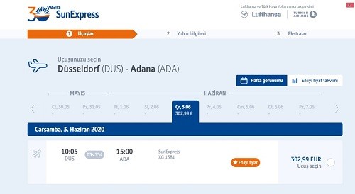 SunExpress Almanya – Türkiye uçuşlarını firmanın web sitesi online bilet satın alma adımından kontrol edebilirsiniz.