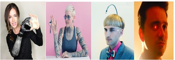 Günümüzde vücutlarını teknoloji ile entegre edilerek görünüşlerini, duyularını, özellikleri ve yeteneklerini artıran ve farklılık katan bireyler bulunmaktadır. Yukarıdaki resimleri incelediğimizde biyonik kol (görsel 1), mıknatıssal özellikli parmak uçları (görsel 2), renklerin ses dalgaları yoluyla algılanabilmesini sağlayan anten (görsel 3), kayıt yapan ve kırmızı ışık yayan biyonik göz (görsel 4) ‘artırılmış insan’a örnek olarak verilebilir. Artırılmış bireye dair daha detaylı bilgiyi Avlupınar (2019)’un blog yazısında bulabilirsiniz.