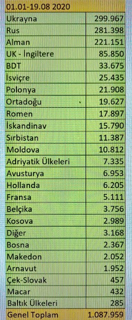 Antalya geçen yıl 193 ülkeden misafir ağırlarken şu an 31 ülkeden yolcu alıyor. 1 Ocak – 19 Ağustos tarihlerinde Antalya’ya en çok turist gönderen ilk üç ülke sıralamasını ise şöyle;