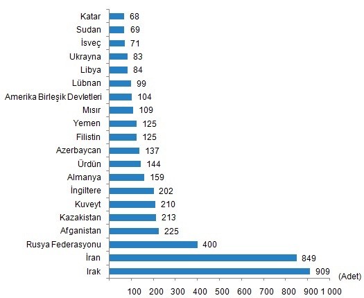 2020 yılının Ekim ayında Irak vatandaşları Türkiye’den 909 konut satın aldı. Irak’ı sırasıyla, 849 konut ile İran, 400 konut ile Rusya Federasyonu, 225 konut ile Afganistan ve 213 konut ile Kazakistan izledi.