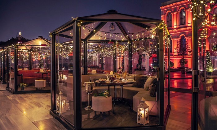 Çırağan Sarayı’nın saray kısmında konumlanan bu lüks mekan büyüleyici boğaz manzarası, enfes lezzetleri ve her şeyi sizin için düşünülen hizmet anlayışıyla sıradan günlerin akşamlarında da mutlaka ziyaret etmeniz gereken bir yer. Fakat yılbaşı konseptine büründüğünde apayrı bir ortam sunabiliyor.