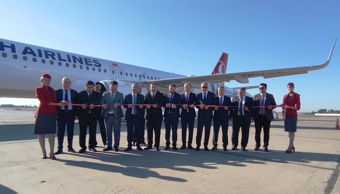 Küresel markanın 7 Haziran günü TK266 sefer sayısıyla şehre ilk kez teker koyan Airbus A321neo tipi uçağı havalimanında su takı ile karşılandı.