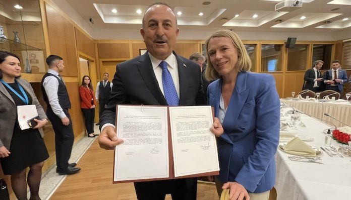 Türkiye ile imzalanan anlaşmayı Twitter hesabından duyuran Norveç Dışişleri Bakanı Anniken Huitfeldt ve Dışişleri Bakanı Mevlüt Çavuşoğlu anlaşma ile fotoğraf çektirdi.