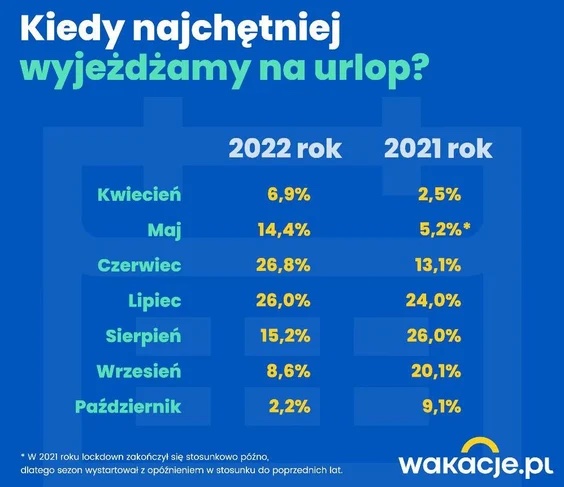 Polonyalılar için yaz sezonu Nisan ayında başladı. Polonyalılar geçen sene tatil için en çok Ağustos ayını, ikinci olarak Temmuz ayını tercih ederken; bu yıl Haziran ayı ilk sırada yer aldı.