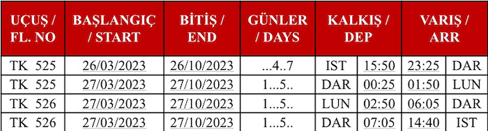 Lusaka uçuşları, ilk etapta 26 Mart – 27 Ekim 2023 tarihleri arasında düzenlenecek.