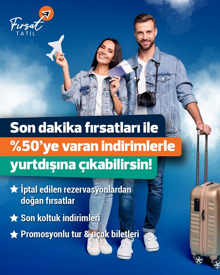 Portföyünde yer alan son dakika fırsatları, bütçe dostu yurt dışı turlar ile ister spontane bir kaçamak planlayın, ister uzun zamandır ertelediğiniz tatili hayata geçirin.