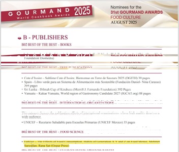 Balıkesir Üniversitesi (BAÜN) Turizm Fakültesi Gastronomi ve Mutfak Sanatları Anabilim Dalı öğretim üyesi Prof. Dr. Mehmet Sarıoğlan ile lisansüstü öğrencisi Rana Şat’ın ortak çalışması olan iki uluslararası kitap, gastronomi dünyasının “Oscar”ı olarak bilinen 31. Gourmand World Cookbook Awards’ta büyük başarı elde etti.
