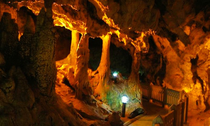 Kent merkezine 13 kilometre uzaklıkta Sarpgüney Tepesi’nin kalkerli yamacında bulunan mağara 1952’de Dr. Temuçin Aygen’in yaptığı çalışmaların ardından 1966’da turizme açıldı.