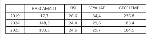 Geceleme sayısındaki kayıp ise daha belirgin. 2025’te toplam geceleme 184,53 milyon olarak gerçekleşti; 2019’da ise bu rakam 236,8 milyondu. Böylece konaklama sayısında %20’yi aşan bir azalma yaşandı.
