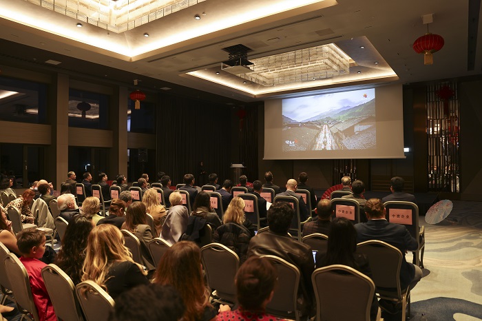 Konuklar salona giriş yaptı, Çin ve Türkiye temalı görseller eşliğinde misafirler karşılandı.