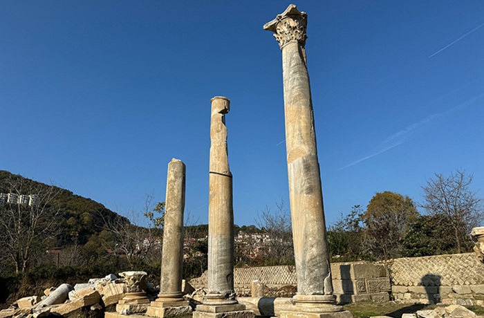 Çam, “Geçen yıl ayağa kaldırılan 3 sütunun hemen batısındaki 4 sütun da ayağa kaldırıldı ve yerine yerleştirildi. Diğer mimari bloklar da sergileme alanında ziyaretçilerin beğenisine sunulmuş durumda. Bundan sonraki aşamada da alanın batı yönünde yer alan ve daha önce keşfettiğimiz yeni stoa yapısını da gün yüzüne çıkararak, 2026 sonu veya 2027 başında alanın ziyarete açılmasını planlıyoruz” dedi.