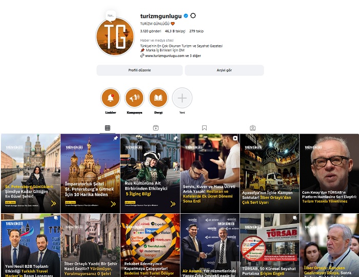 Turizmgunlugu.com haber yayını + Instagram dağıtımı + sosyal medya görünürlüğü