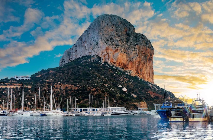 Rock of Penon by Ifach. Mediterranean coast landscape in the city of Calpe.